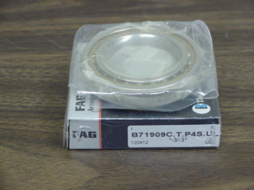 Technical data of FAG B71909-T-P4S-UL ID: 45 mm OD: 68 mm Width: 12mm Weight: 0.117kg Basic dynamic load rating: 19.1kN Basic static load rating: 11.2kN Fatigue limit load: 1.15 kN Limiting speed with grease lub.: 20000 rpm Limiting speed with oil lub.:3.2000 rpm |